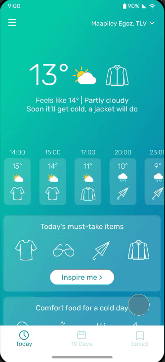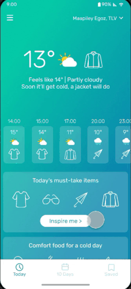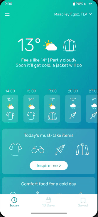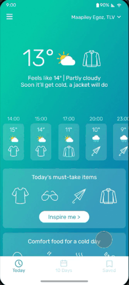Based on the users' input, the app learns the fashion styles, culinary preferences, and their favorite places to travel, thus saving time when choices are frequently forced to change due to the weather. Of course, there is business potential here for cooperation with fashion brands, food deliveries, and tourism and travel companies.